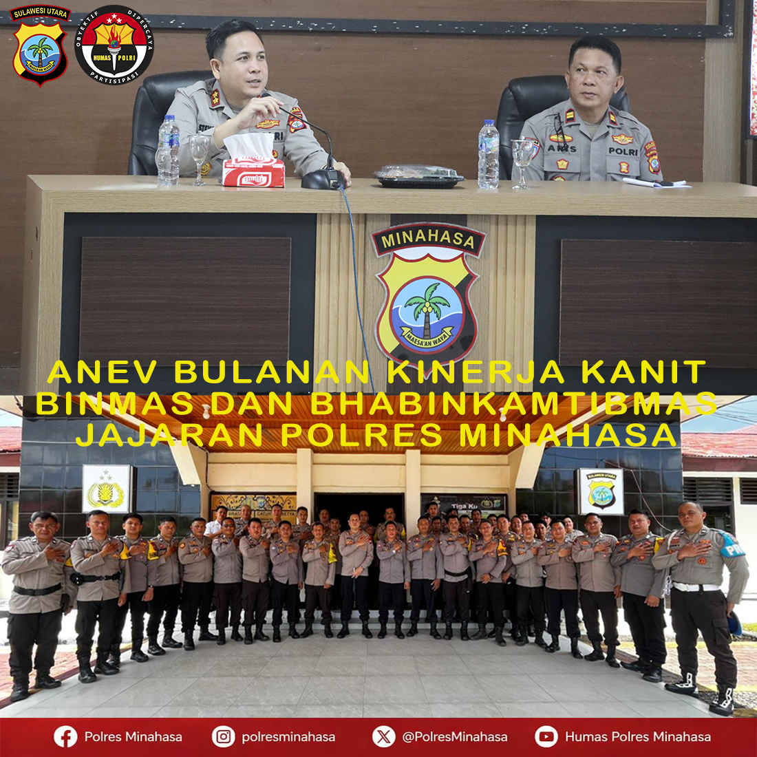 Minahasa – Polres Minahasa menggelar kegiatan Analisa dan Evaluasi (Anev) Bulanan Kinerja Kanit Binmas dan Bhabinkamtibmas, yang berlangsung di Ruang Maesa, Senin (27/04/2026).