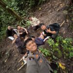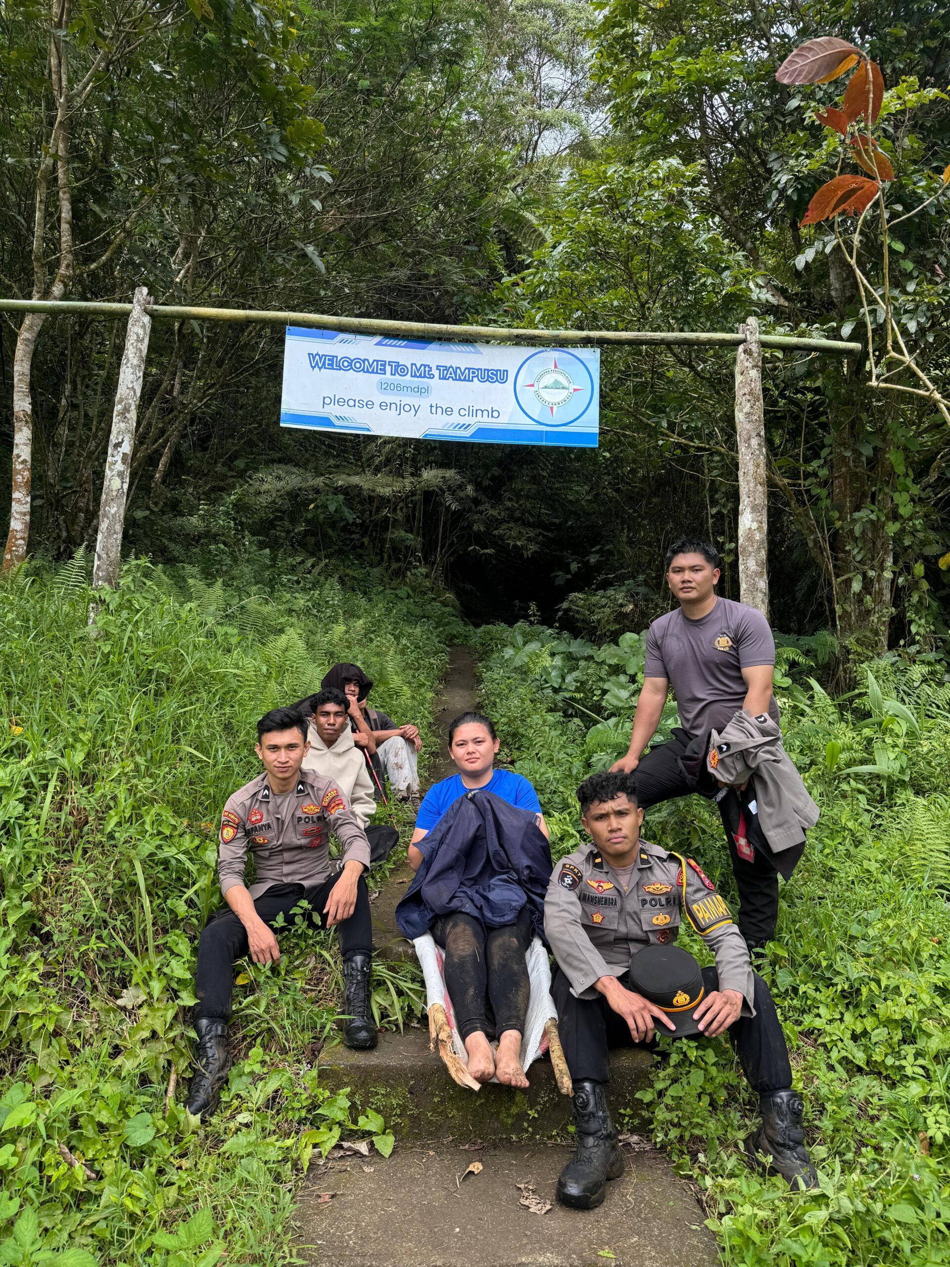 REMBOKEN-MINAHASA – PAMAPTA Polres Minahasa bersama personel Samapta berhasil mengevakuasi seorang pendaki yang mengalami cedera kaki di Puncak Gunung Tampusu, Minggu (05/04/2026).
