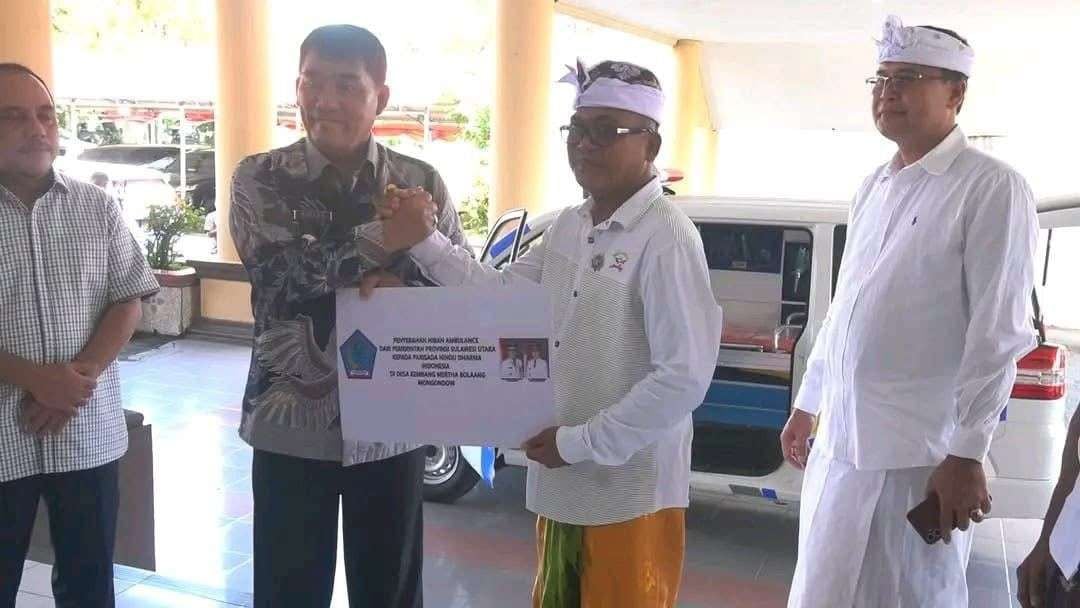 NADAYUDHA,Bolmong – Harapan masyarakat Hindu Desa Adat Kembang Mertha, Kabupaten Bolaang Mongondow, akhirnya terwujud dengan hadirnya satu unit ambulans dari Pemerintah Provinsi Sulawesi Utara. Ambulans tersebut diserahkan langsung oleh Gubernur Sulut Yulius Selvanus Komaling pada Jumat, 23 Januari 2026.