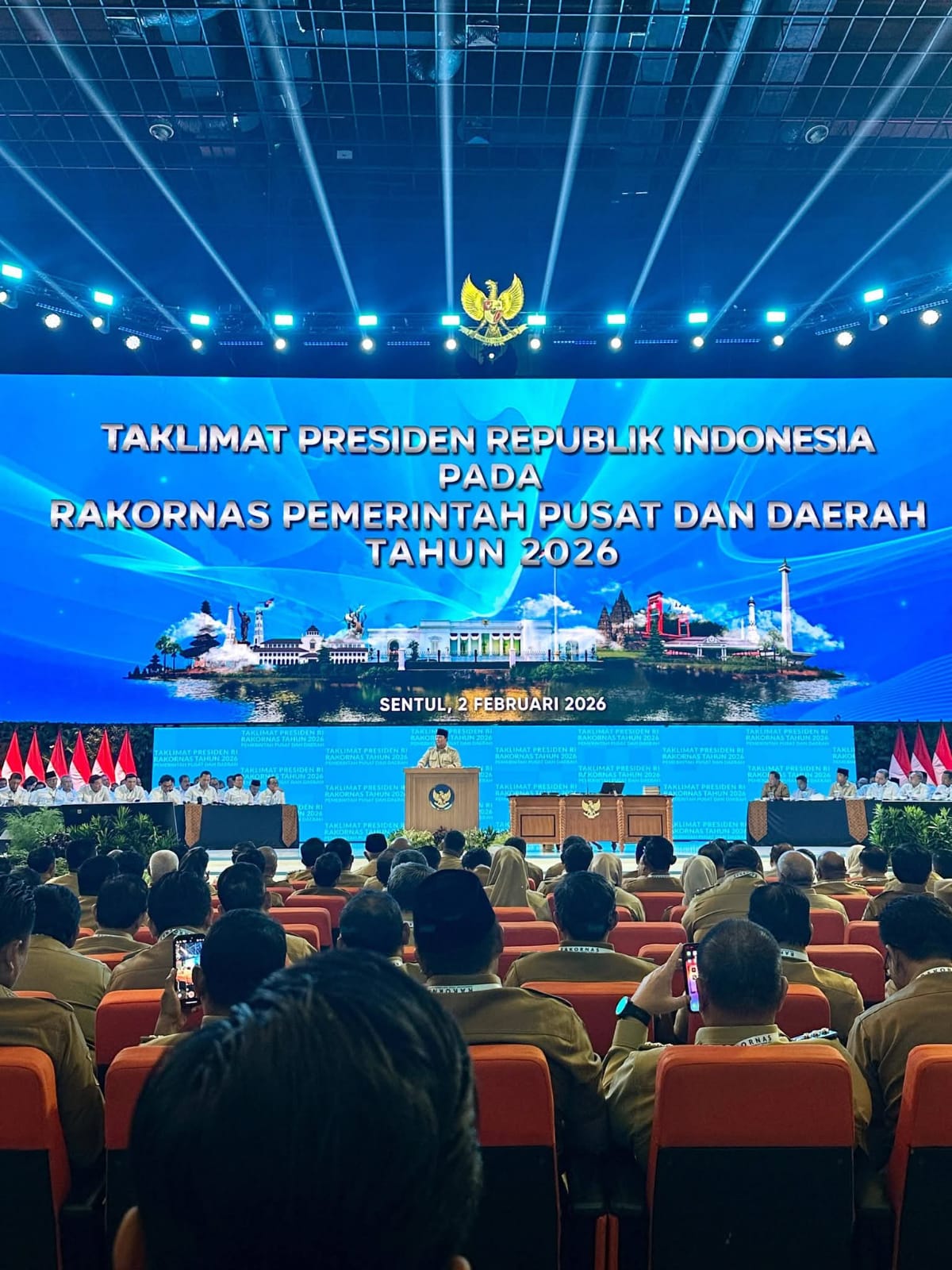 BOGOR– Bupati Minahasa Robby Dondokambey, S.Si, MAP, bersama Wakil Bupati Minahasa Vanda Sarundajang, SS, mengikuti Rapat Koordinasi Nasional (Rakornas) Pemerintah Pusat dan Daerah Tahun 2026 yang diselenggarakan oleh Kementerian Dalam Negeri Republik Indonesia, di Sentul International Convention Center (SICC), Kabupaten Bogor, Senin (2/2) 2026.