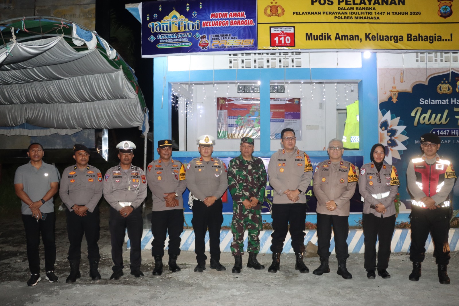 Kapolres Minahasa AKBP Steven J.R. Simbar, S.I.K bersama Wakapolres Minahasa Kompol Djonny Rumate, S.Sos., M.A.P didampingi para Pejabat Utama (PJU) Polres Minahasa melaksanakan pengecekan Pos Pengamanan (Pos Pam) Kampung Jawa, Pos Pam God Bless, serta Pos Pelayanan (Pos Yan) Boulevard Tondano dalam rangka Operasi Ketupat Samrat 2026, Jumat (20/3).