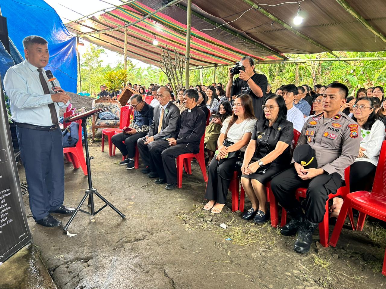 Dalam suasana penuh duka, Kapolsek Remboken tampak hadir langsung di tengah jemaat sebagai bentuk penghormatan terakhir sekaligus memberikan dukungan moril kepada keluarga yang ditinggalkan. Kehadiran tersebut menjadi wujud nyata kedekatan Polri dengan masyarakat.