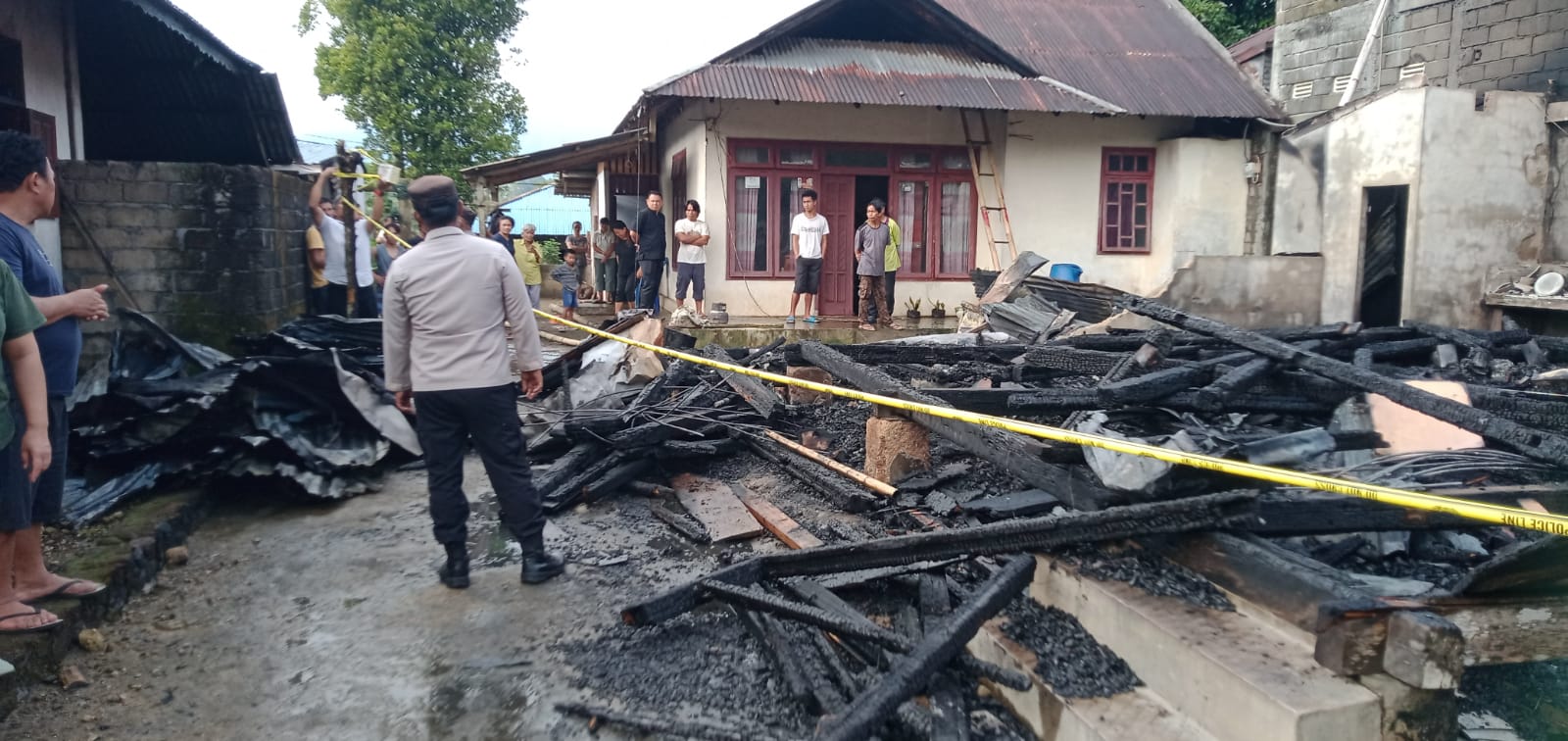 Kawangkoan Utara — Kebakaran melanda sebuah rumah warga di Desa Kiawa 1 Barat Jaga III, Kecamatan Kawangkoan Utara, Rabu (4/3/2026) sekitar pukul 05.30 WITA. Rumah berbahan kayu milik YAN SINGON (70) hangus dilalap siang jago saat korban sedang berada di dalam rumah.